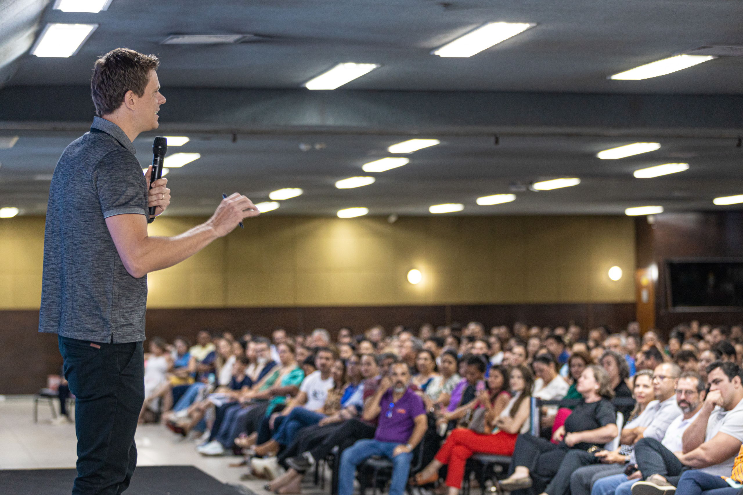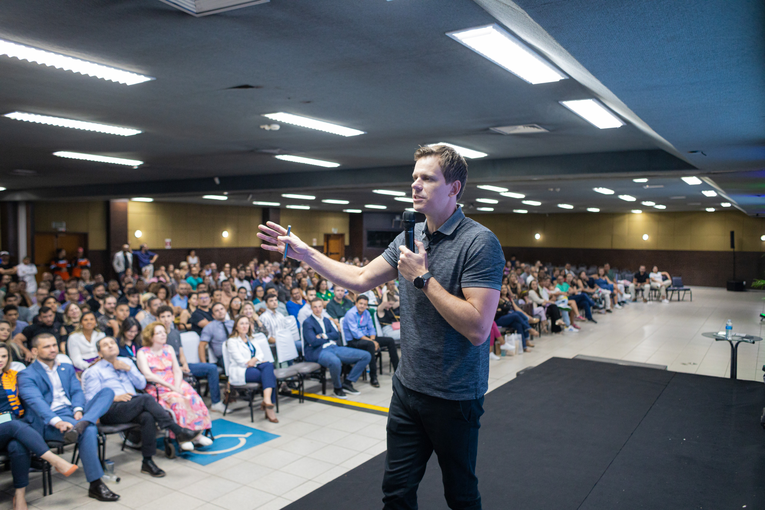 Os empreendedores e microempreendedores de Cuiabá receberam, nesta segunda-feira (06.11), a palestra “Princípios da Alta Performance”, ministrada pelo atleta César Cielo. O evento foi promovido pelo Serviço de Apoio às Micro e Pequenas Empresas em Mato Grosso (Sebrae/MT), no Centro de Eventos do Pantanal (CEP). A capital foi a 11ª cidade de Mato Grosso a receber o ex-nadador, que encerrou no estado o seu circuito de palestras em parceria com o Sebrae/MT.