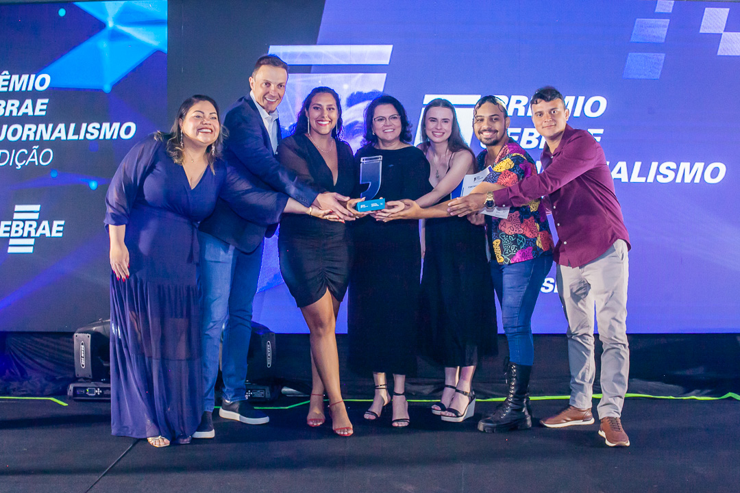 Ryan (segundo da direita para esquerda) e colegas recebem Prêmio Sebrae de Jornalismo na categoria universitário
