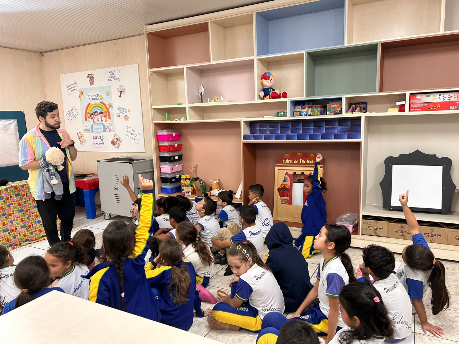 Conceitos que poderiam soar complexos à primeira vista, como sustentabilidade, empreendedorismo e finanças, foram traduzidos de forma didática em uma experiência artística. A apresentação de teatro de sombras trabalhou os temas com as crianças de 5 a 7 anos por meio de uma narrativa criativa e envolvente, vivenciada por personagens projetadas em um fundo branco.