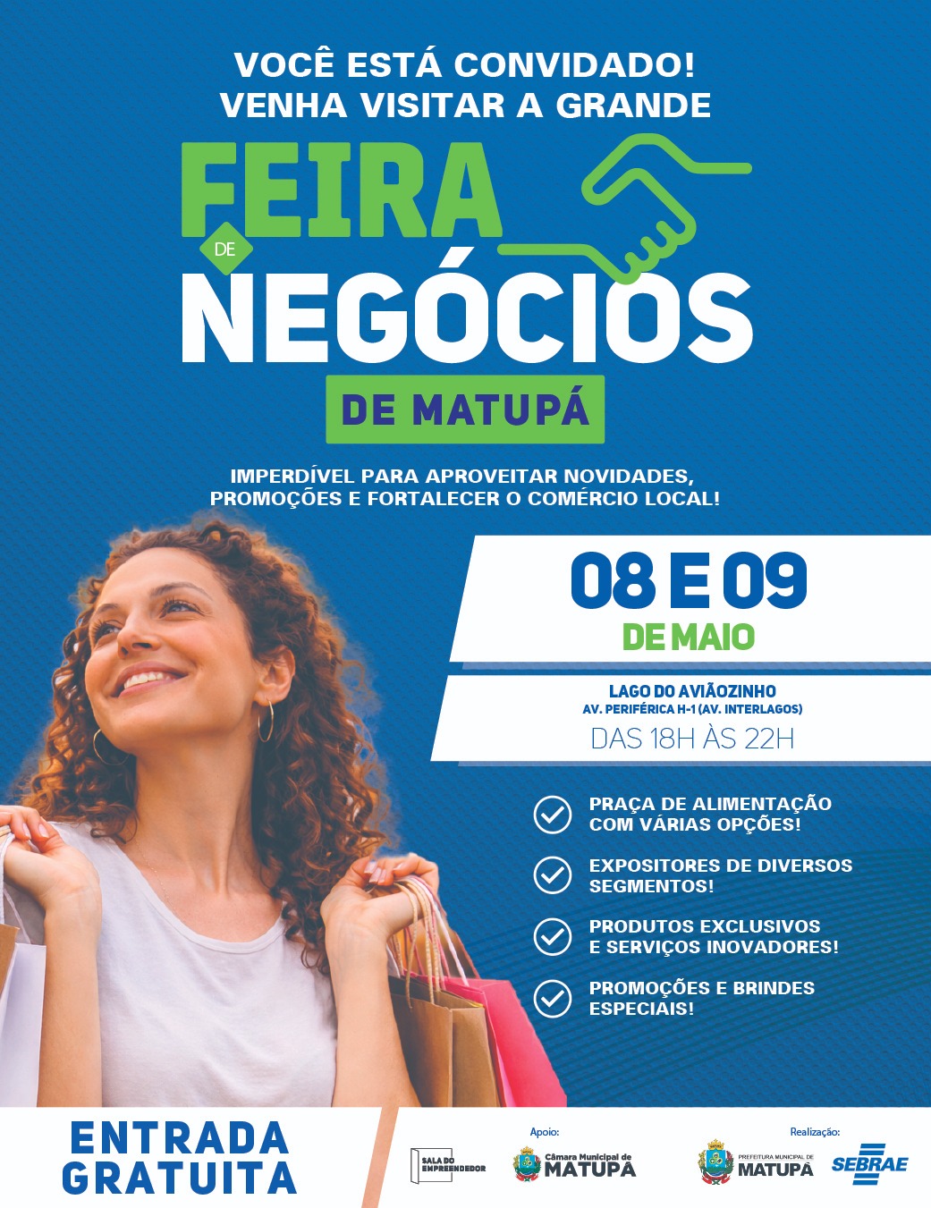 A cidade de Matupá se prepara para viver dois dias de intensa movimentação econômica e social com a realização da 1ª Feira de Negócios, promovida pelo Serviço de Apoio às Micro e Pequenas Empresas do Estado de Mato Grosso (Sebrae/MT), em parceria com a Prefeitura Municipal. O evento acontece nos dias 8 e 9 de maio, a partir das 18 horas, na Avenida Periférica H1, Avenida Interlagos, no Lago do Aviãozinho.