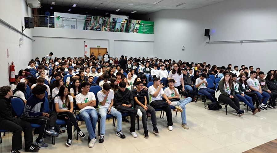 “O jovem tem, por meio do celular, ferramentas que possibilitam que ele ganhe dinheiro. As redes sociais e aplicativos como CapCut e Canva facilitam que eles criem sites, preparem artes, slides e muitos outros produtos para que seja possível fazer uma renda extra e começar a atuação no empreendedorismo com pouco custo e de forma criativa”, disse o palestrante.