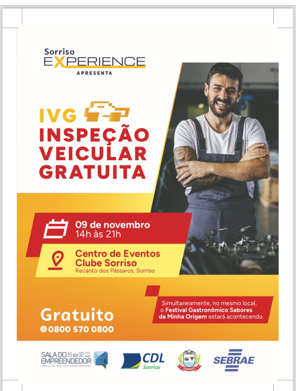 Ainda na agenda de sábado, das 14h às 21h, o Sebrae/MT realiza a Inspeção Veicular Gratuita (IVG). As oficinas participantes realizarão um checklist abrangente com cerca de 80 itens, incluindo áreas como funilaria, elétrica, mecânica, hidráulica e estofados, para que proprietários de carros e caminhonetes possam fazer uma manutenção preventiva planejada.