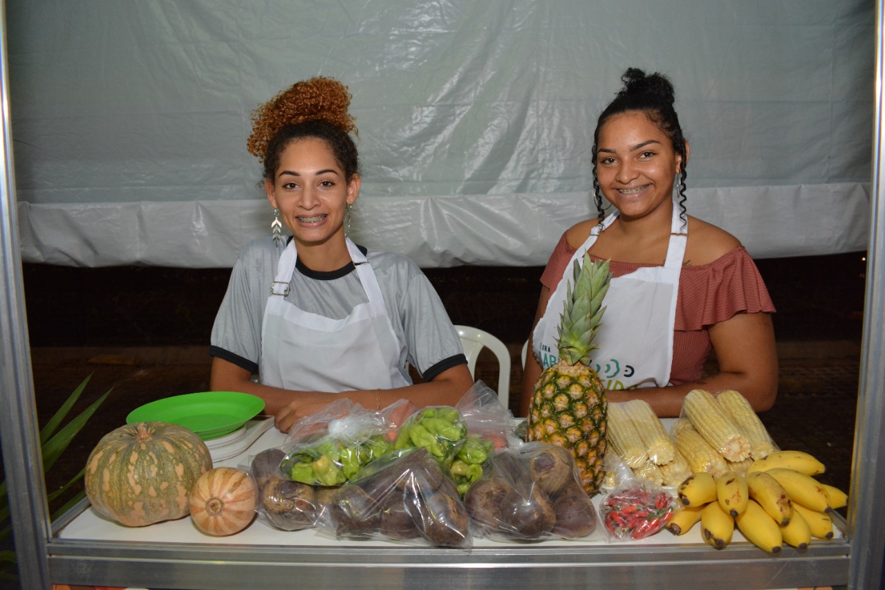 Representantes da Cooper Nossa Senhora do Livramento estão comercializando frutas e legumes fresquinhos – vagem, jiló, abóbora, beterraba, pimentas diversas, milho verde, banana, mandioca e muito mais. Jaqueline Arruda explica que a cooperativa reúne mais de 60 pequenos produtores da Baixada Cuiabana e também de Chapada dos Guimarães.