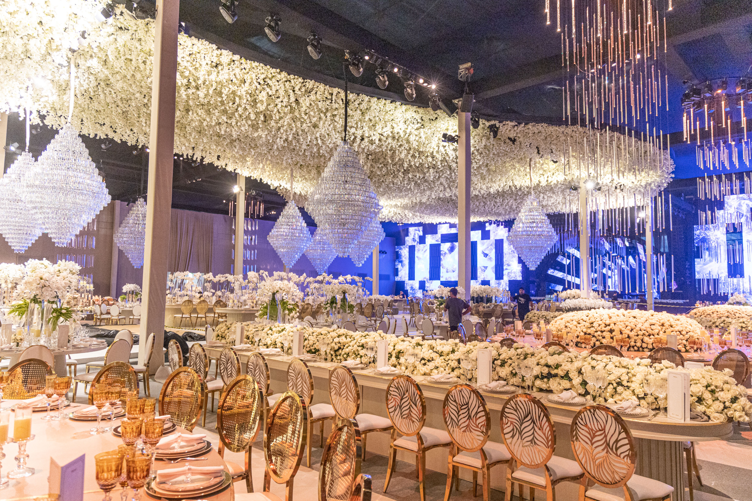 Cada canto do prédio de 12.000m² foi utilizado para garantir o sucesso e a excelência desta celebração. Responsável pela organização do casamento, o cerimonialista Jaeder Barreto, conta que o evento de grande proporção e complexidade envolveu uma extensa estrutura e logística intensiva. “A estrutura do Centro de Eventos desempenha um papel fundamental na realização desse evento, com suporte integral para todas as necessidades operacionais”, diz.